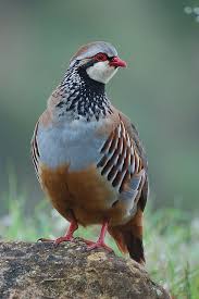 La perdiz roja debe su nombre al color característico de su pico y sus patas. Tiene como característica principal "una gran velocidad y potencia de vuelo", además de un peso medio de 350-420 gramos y presenta un componente muy agreste que la convierte en un trofeo codiciado para los cazadores.